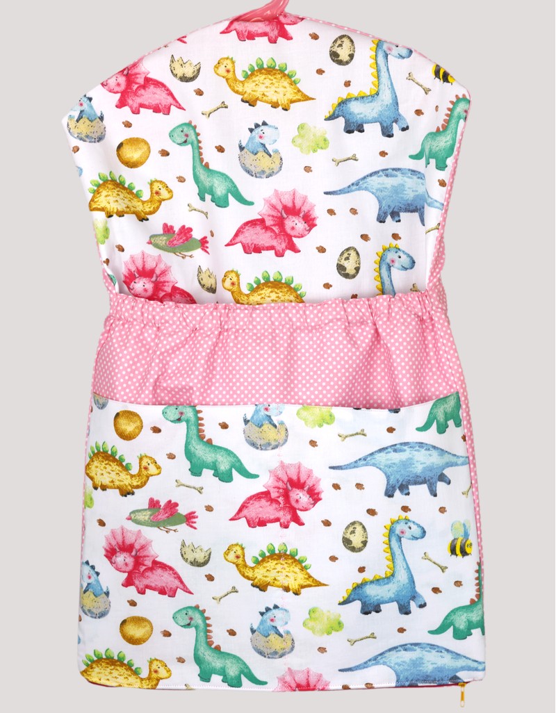 Tento kapsář jsme ušili pro všechny malé milovnice dinosaurů. Oblíbíte si ho také pro vyladění s puntíkovanou růžovobílou bavlnou.