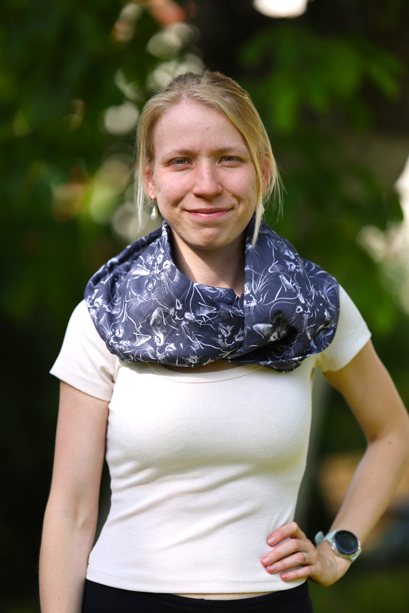 Lehký, prodyšný a stylový – přesně takový nákrčník jsme ušili z jemného bavlněného mušelínu s motivem kočičích čumáčků. Díky rozměrům 33 × 140 cm si ho snadno dvakrát obtočíte kolem krku a ochrání vás před větrem i proměnlivým počasím od jara do podzimu. V zimě ho oceníte spíš v práci – na ven doporučujeme teplejší materiál.