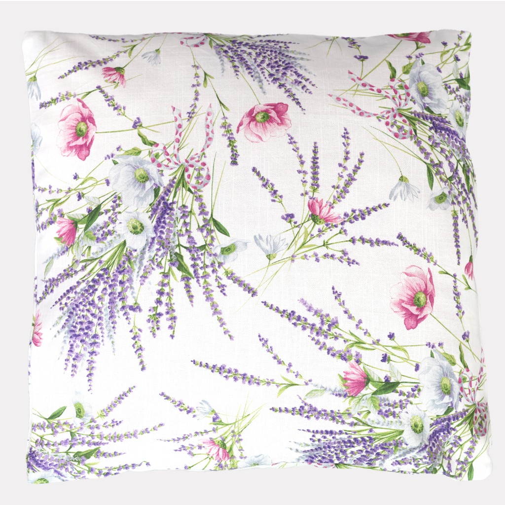 Romantický povlak na polštář, který vnese do interiéru klid, jemnost a atmosféru rozkvetlé letní louky. Působí lehce a svěže, jako byste si právě přinesli domů voňavou kytici z procházky po venkově. Jemný motiv levandule, vlčích máků a dalších lučních květin na světlém podkladu krásně ladí s přírodním, provence i vintage stylem.